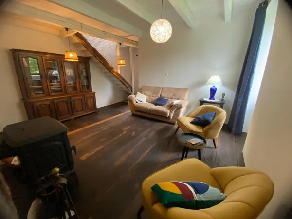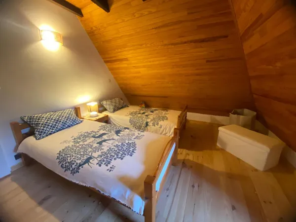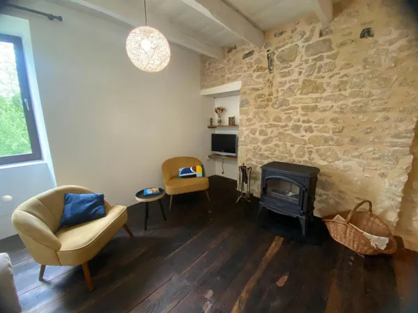 Gîte indépendant totalement aménagé, à proximité de la maison du propriétaire, en campagne et au village. Cuisine refaite à neuf, aménagée avec toute commodité, un salon et ses pierres apparentes, une salle d’eau, 2 chambres à l’étage (2 lits simples, 1 lit double) et commodités bébé si besoin.